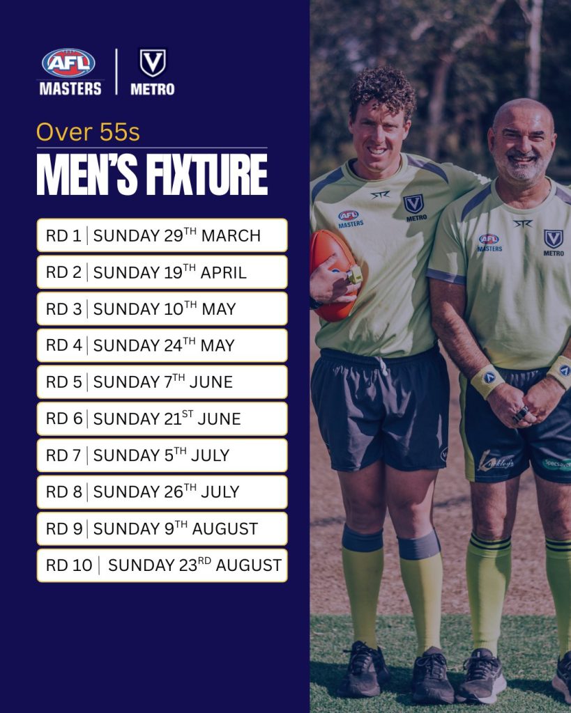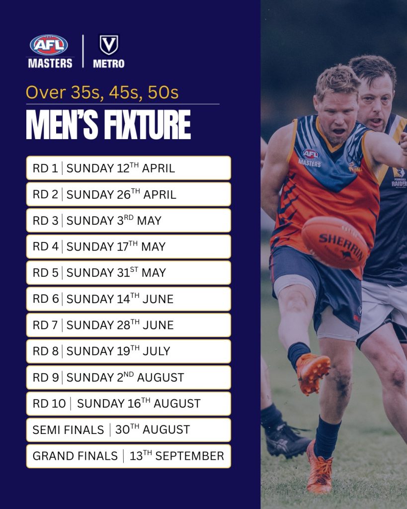 The Vic Metro AFL Masters league has released fixtures for the 2026 season – see below images for details.